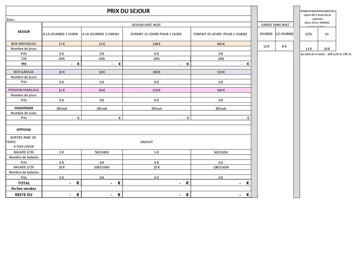 Retrouvez ci-dessous le détail du contrat ainsi que les tarifs des différentes prestations proposées.